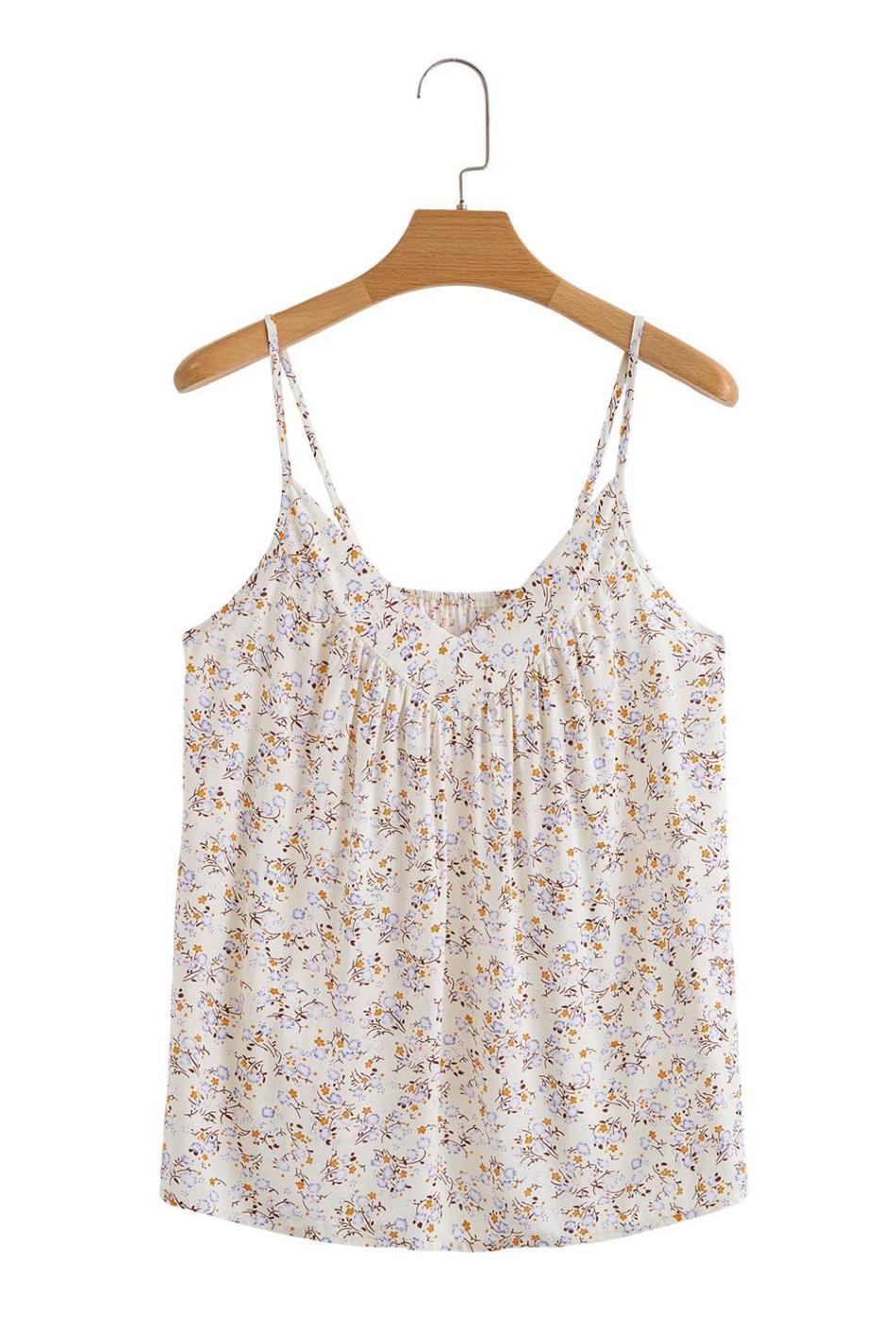 - The Charming Floral Print Adds A Whimsical Flair To This Pleated Sleeveless Top, Perfect For Both Casual Outings And Special Occasions.