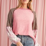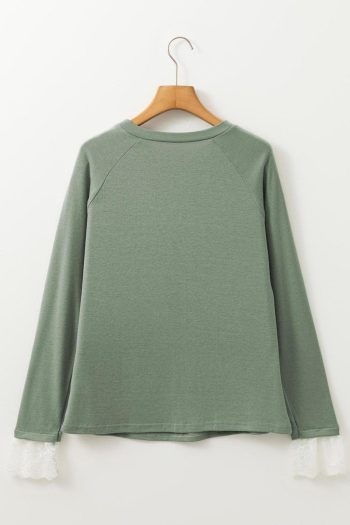 Grass Green Seam Detail Lace Contrast Cuffs Raglan Sleeve Top | Women Long Sleeve Tops