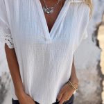 - Elevate Your Wardrobe With This Chic Blouse Featuring A Stylish Split Neck Design.
