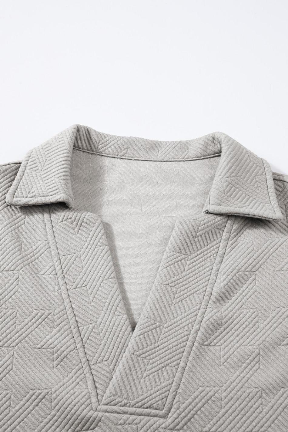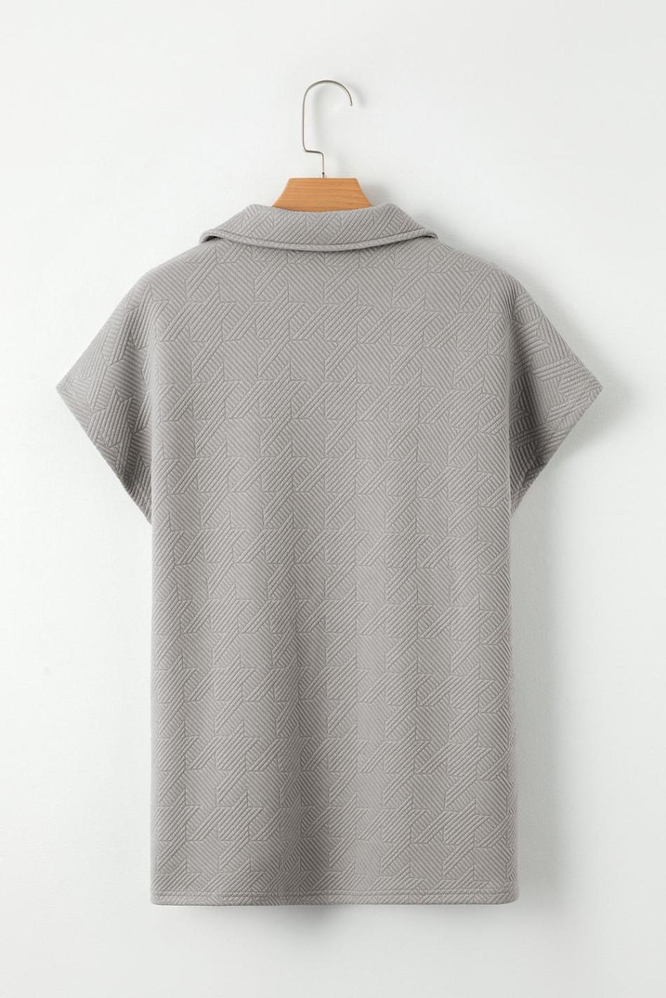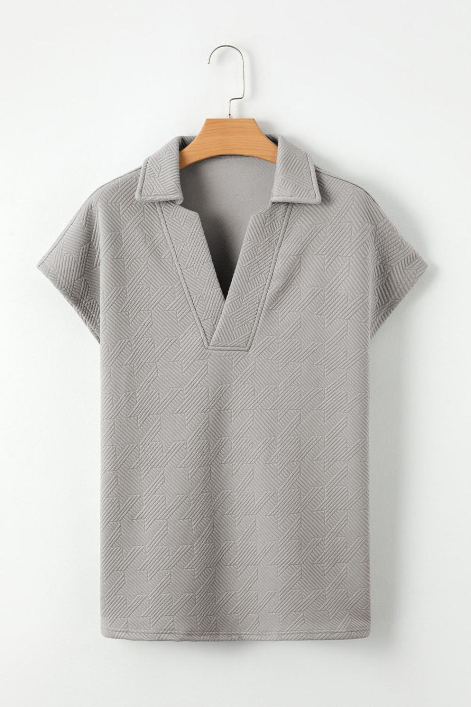 - Boasting A V-Neckline Adorned With A Collar, Short Sleeves, And Stylish Side Splits, This Top Adds A Touch Of Elegance To Your Look.
