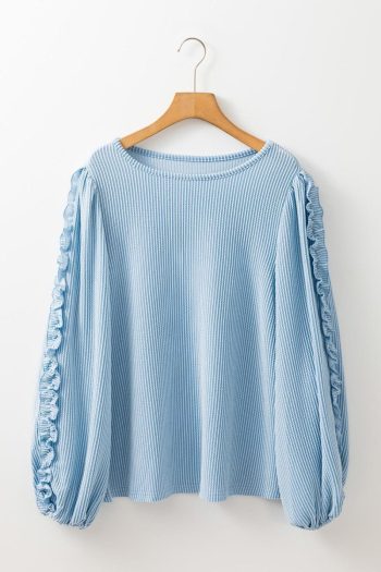 | Tag | Color Blue,Pattern Plain,Fabric Ribknit,Detail Ruffle,Style Elegant,Style Casual,Occasion Daily,Season Spring&Amp;Autumn,Season Winter | ||