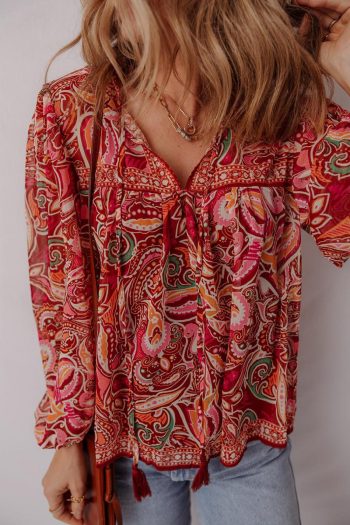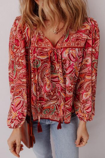 - Embrace Bohemian Chic With The Blouse, Featuring Intricate Paisley Prints That Add A Touch Of Exotic Flair To Your Look.