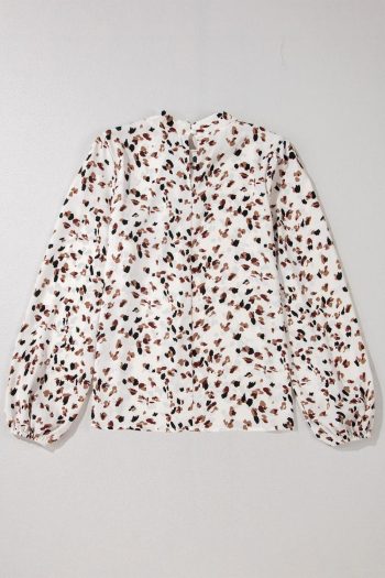 Pink Floral Print Mesh Mock Neck Slim Blouse | Women Long Sleeve Tops