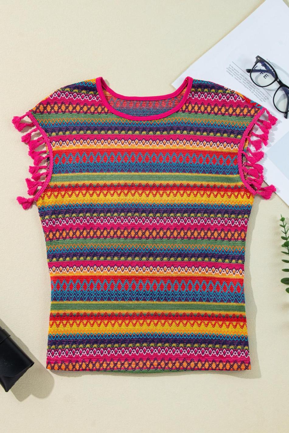 | Tag | Style Boho,Color Red,Fabric Textured,Pattern Striped,Detail Tassel,Season Summer,Pattern Geometric,Sale Clearance,Tops Sale,Year 2025 | ||