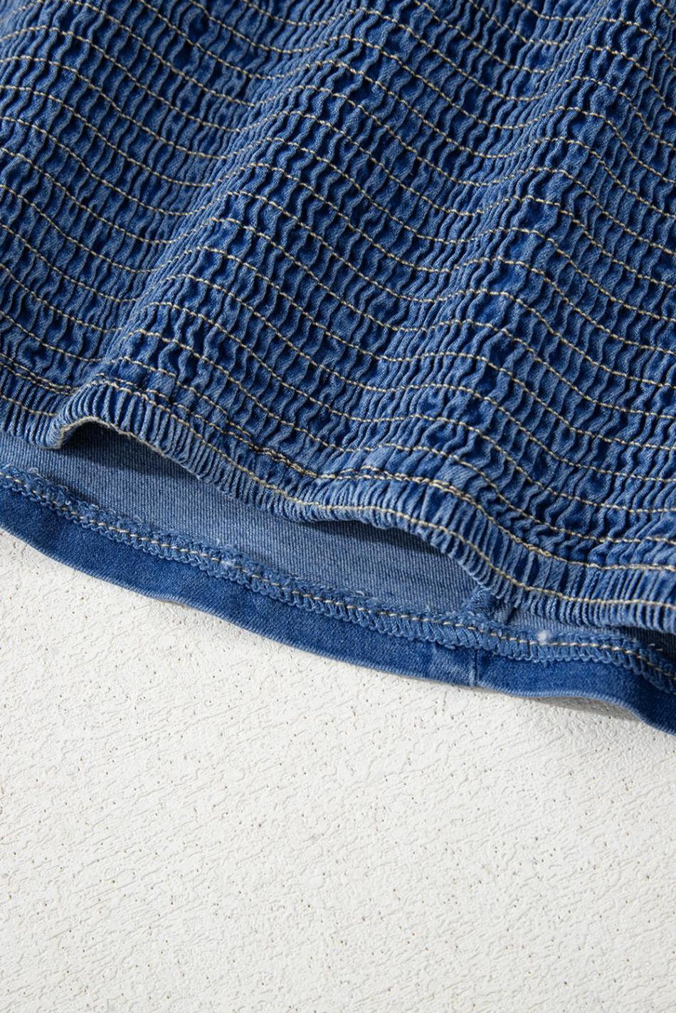 • Embrace A Unique Style Statement With The Shirred Detailing That Adds Texture And Visual Interest To This Versatile Denim Top.