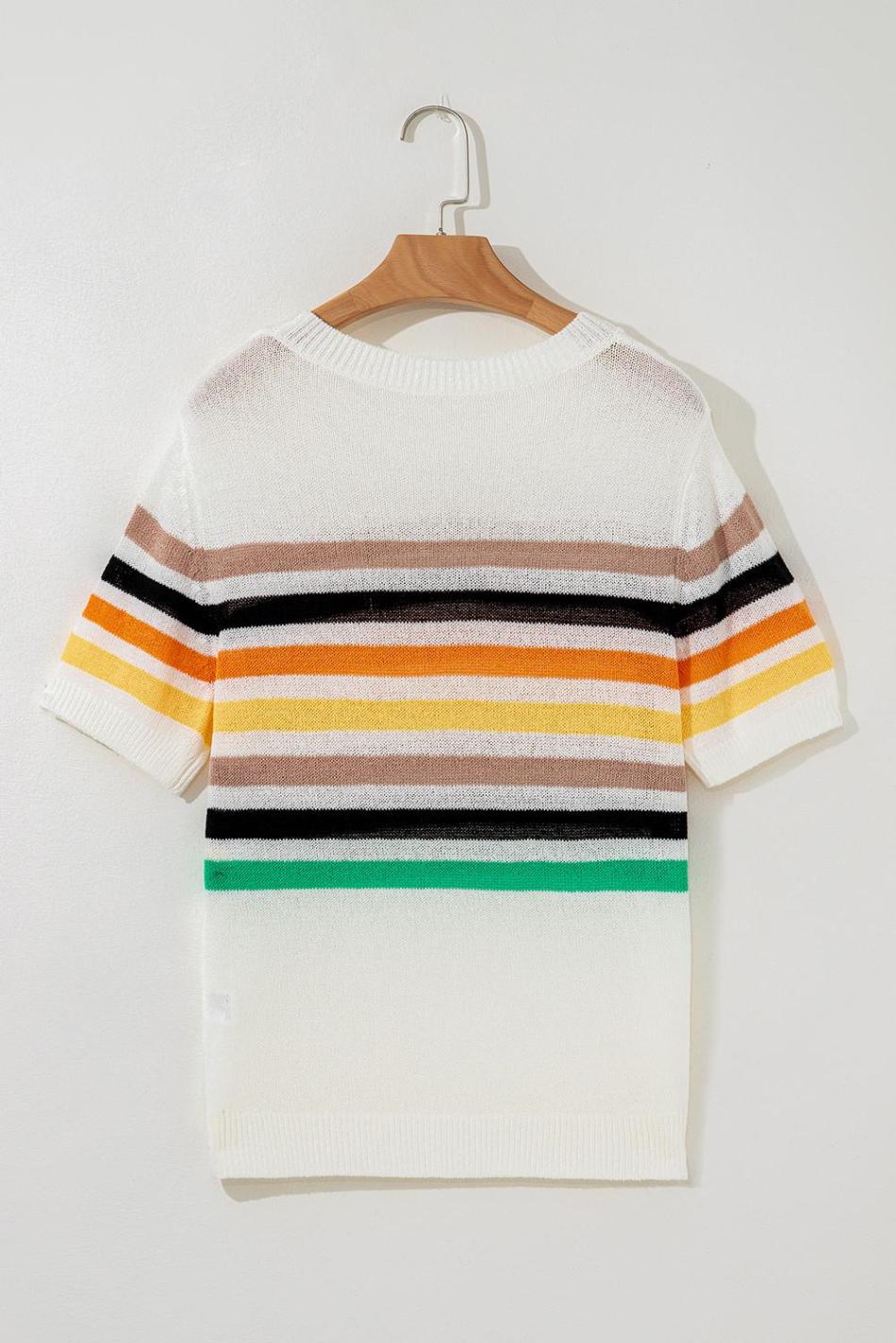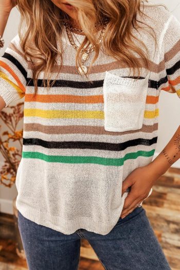 - Featuring Vibrant Colorful Stripes And A Convenient Pocket Detail, This Tee Adds A Playful Touch To Your Everyday Wardrobe.
