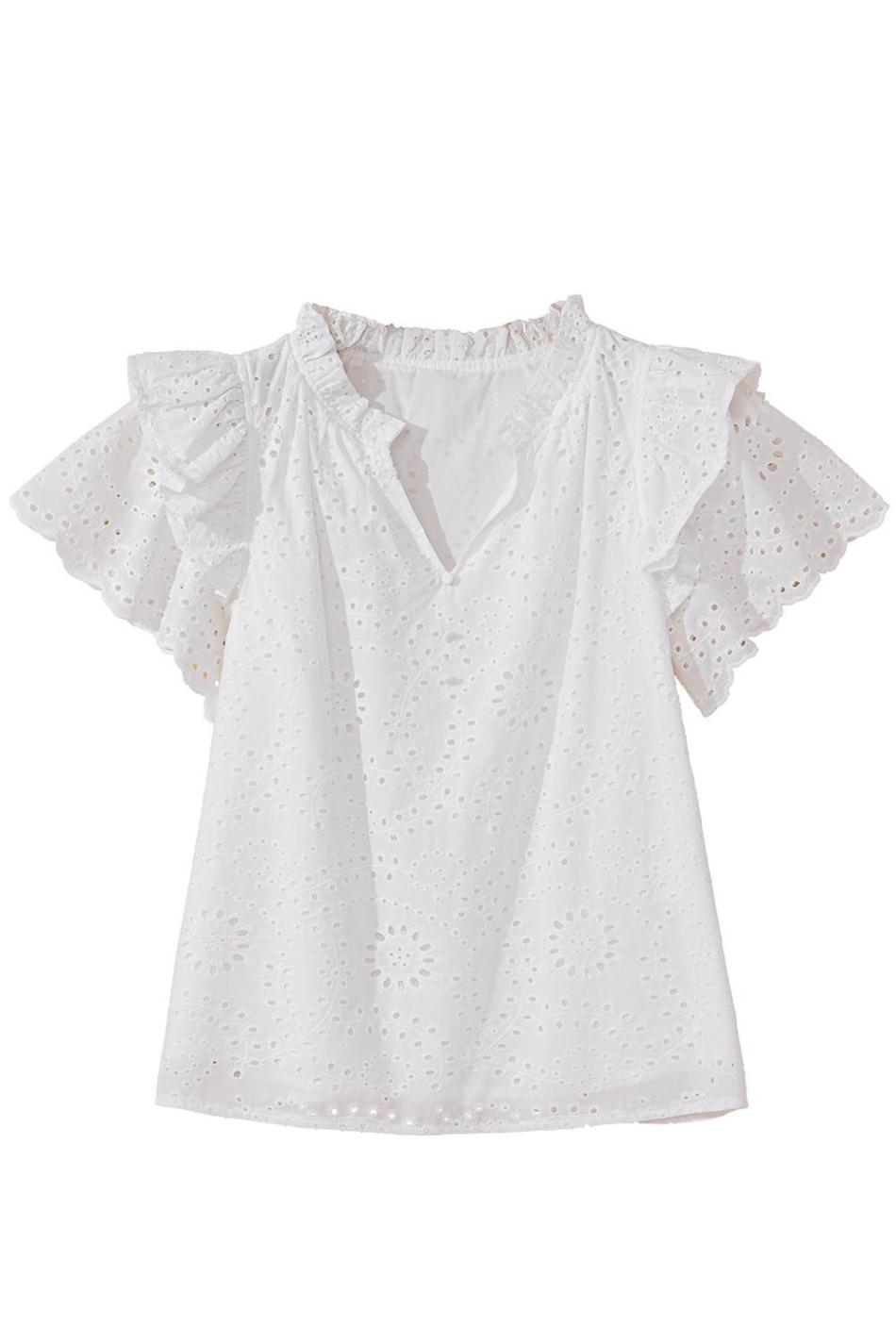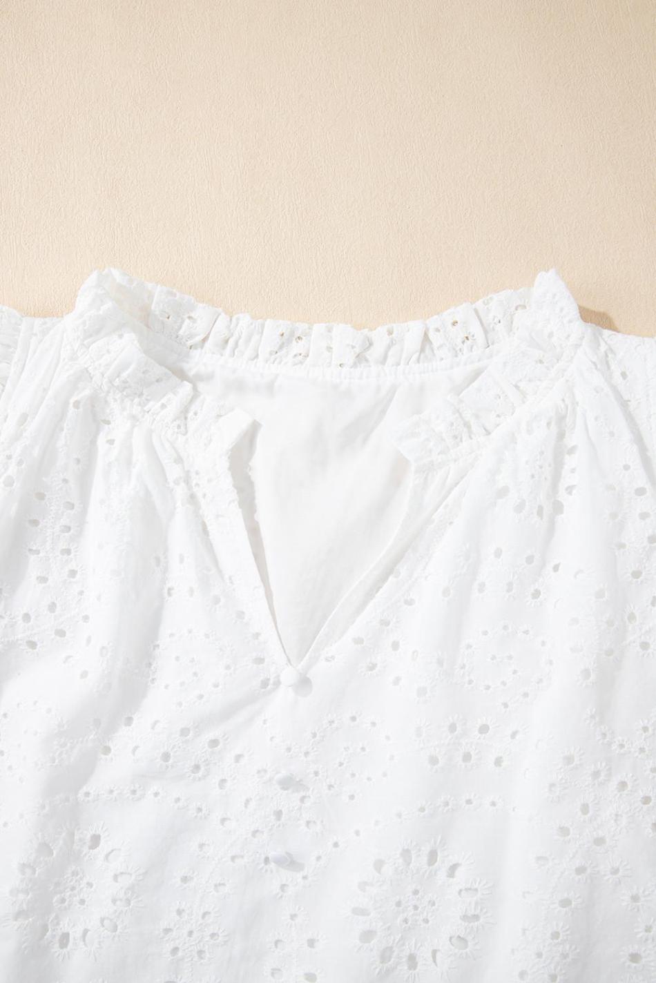 - The Delicate Eyelet Design And Ruffle Details Give A Chic Twist To The Classic V-Neck Style, Perfect For Various Occasions.