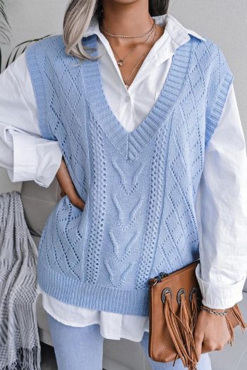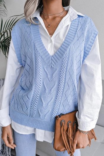 Sky Blue Hollow Out V Neck Knit Vest | Women Knit Tops