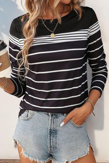 Black Casual Striped Long Sleeve Top | Women Long Sleeve Tops